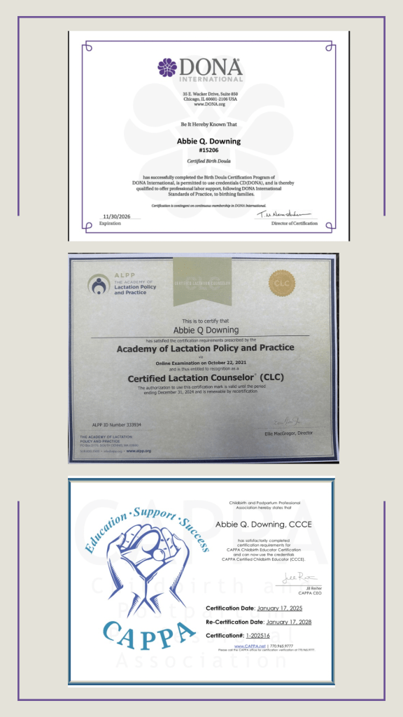 I want to expand the scope of general understanding about birth, and all the various ways a person can choose to birth their baby. There is no wrong choice – there is only what feels right for you. If that choice is honored fully, whether it’s a completely natural childbirth, a home birth, a medically-assisted hospital birth, or a cesarean, then it will be beautiful. My goal as your doula will always be to support with information and care so that no matter the outcome, every client feels seen, heard, and cared for.